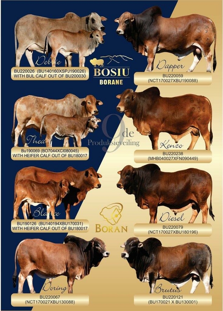 * Note: Under auspices of the Boran Cattle Breeders Society of SA. Gestation status and catalogue information will be available day of sale.