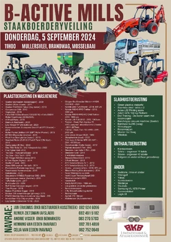 The B - Active Mills Cease Farming Sale will take place on Thursday the 5th of September 2024 from 11:00 at Mullersvlei, Brandwag in Mosselbay.