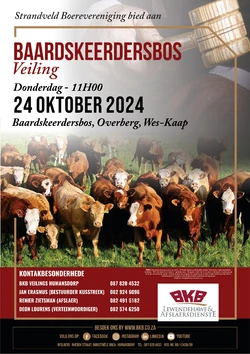 The Baardskeerdersbos Auction will take place on Thursday, the 24th of October 2024 from 11h00, Overberg, Western Cape.