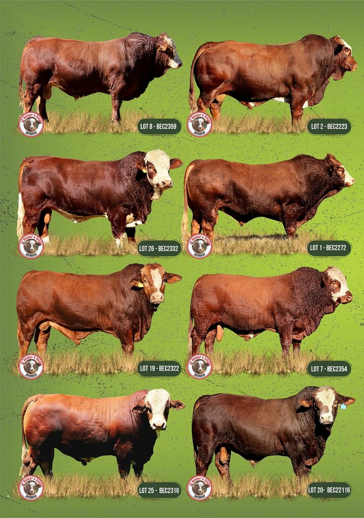 * Note: Animals CA and Trich free. Animals inoculated against all prevalent diseases. Bulls have been tested for fertility, certificates will be available. Transport and insurance available. Catalogue information will available day of sale. Auction will take place according to the Simbra Cattle Breeders Society rules.