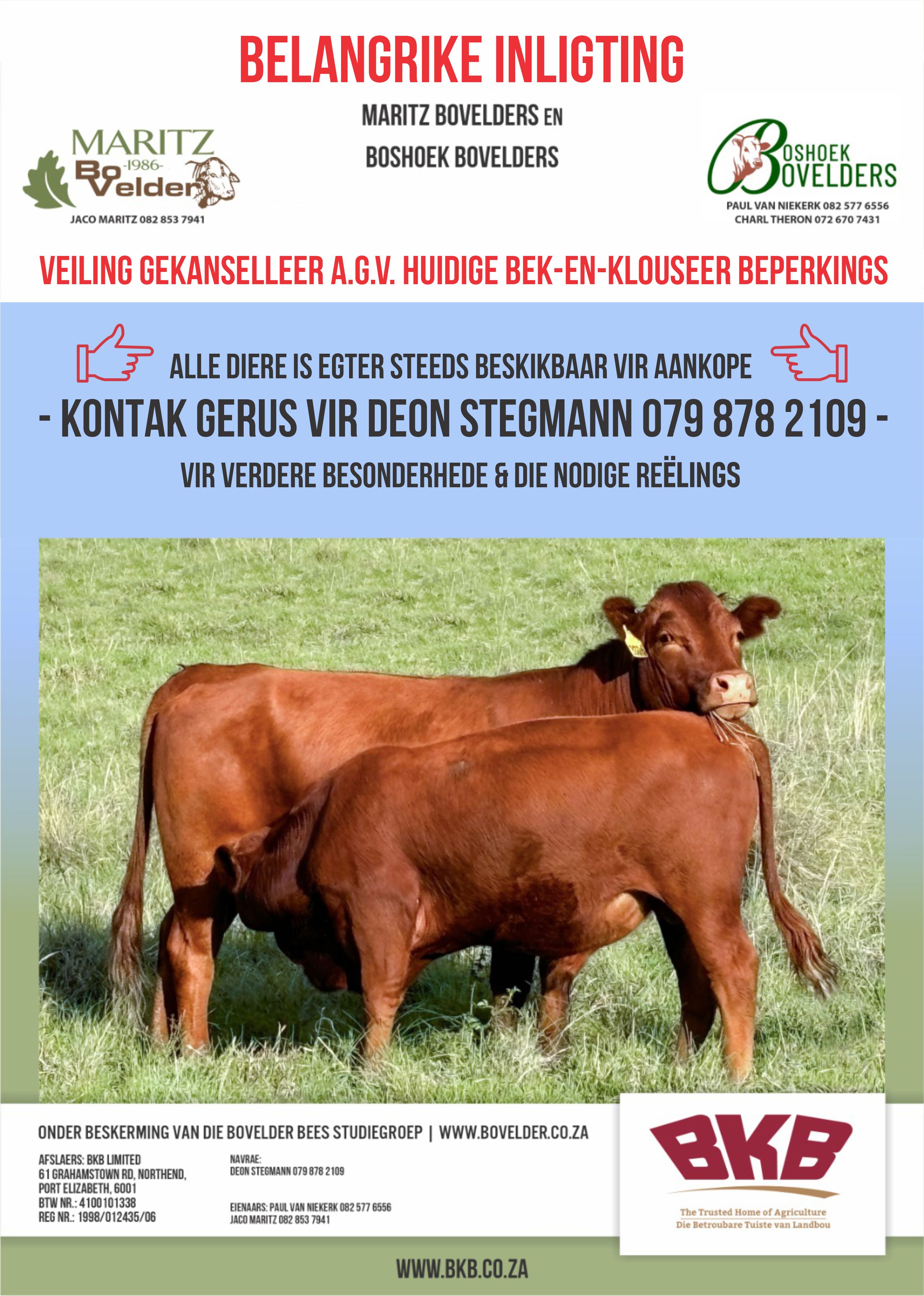 CANCELLED - BOSHOEK & MARITZ BOVELDERS 19 PRODUKSIE VEILING