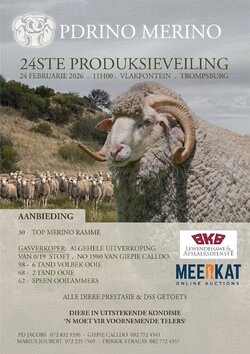 The Pdrino Merino Production Sale will take place on the 24th of February 2026 from 11:00 at Vlakfontein in Tromspburg.