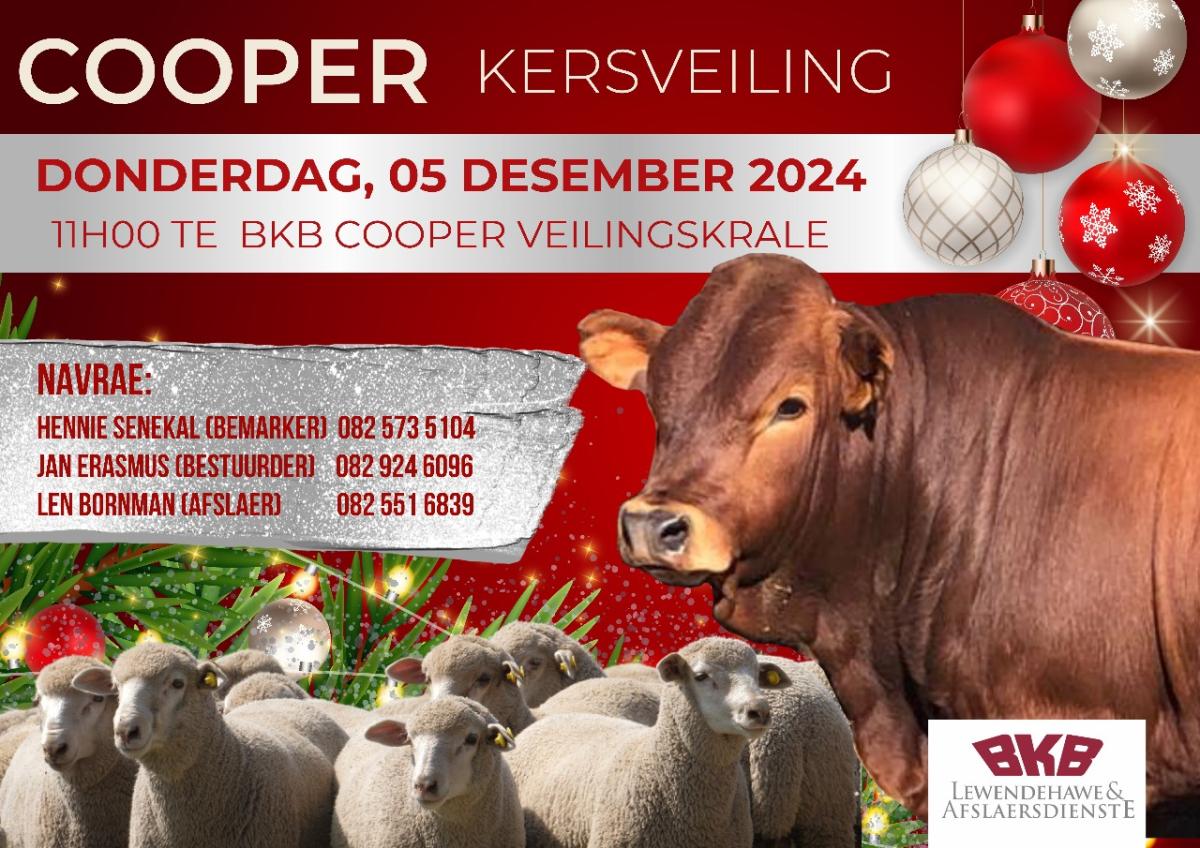 Die Cooper Kersveiling vind plaas op Donderdag, 5 Desember 2024 om 11:00 te BKB Cooper Veilingskrale.