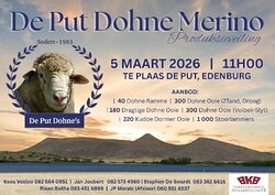 The De Put Dohne Merino Production auction will take place on the 5th of March 2026 from 11:00 on the farm De Put in Edenburg.