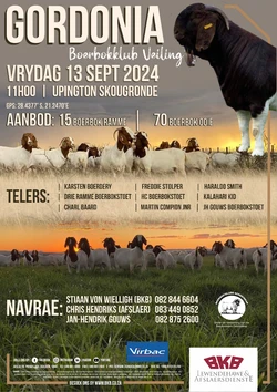 The Gordonia Boergoat Club Auction will be held on Friday the 13th of September 2024 from 11:00 at the Upington Showgrounds.