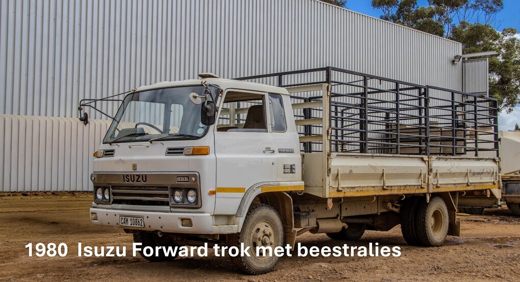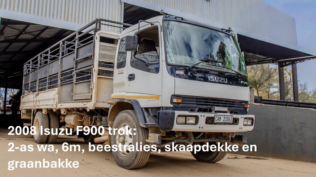 Isuzu F900 trok (2008 model, 2-as wa, 6m, beestralies, skaapdekke en graanbakke)