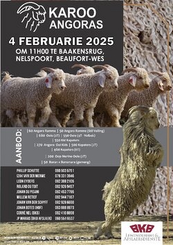 The Karoo Angoras sale will take place on Tuesday, the 4th of February 2025, from 11h00 at Baakensrug, Nelspoort Beaufort-West.