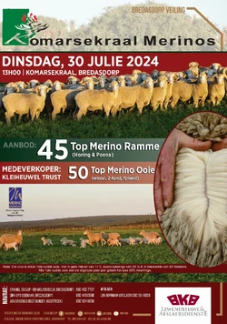 Komarsekraal Merinos will take place on Tuesday the 30th of July 2024 from 13:00 at Komarsekraal in Bredasdorp.