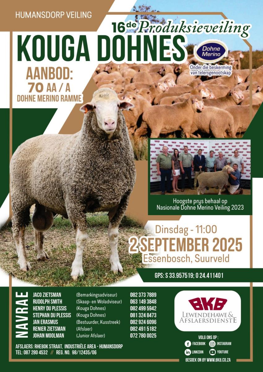 The Kouga Dohnes 16th Production Auction will take place on the 2nd of September 2025 from 11:00 at Essenbosch, Suurveld.