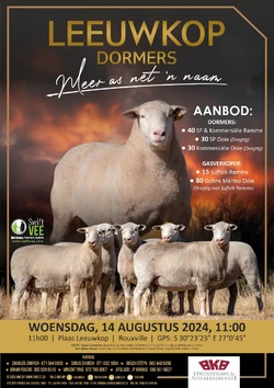 The Leeuwkop Dormers livestock auction will take place on Wednesday the 14th of August 2024, 11:00 on the farm Leeuwkop in Rouxville and on the SwiftVee digital platform.