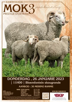 The MOK3 Prestige Stud Ram Production Sale will take place on Thursday, the 26th of January 2023, from 11h00 at the Bloemfontein Showgrounds.