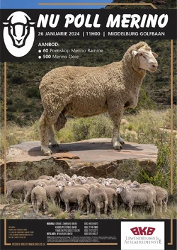 The NU Poll Merino sale will take place on 26 January 2024 from 11:00 at the Middelburg Golf course.