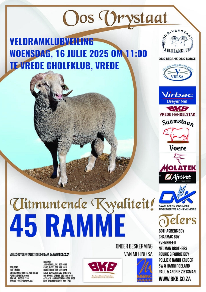 OOS VRYSTAAT VELDRAMKLUB MERINO VEILING