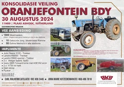 Die Oranjefontein BDY Konsolidasie Veiling vind plaas op die 30ste Augustus 2024 om 11:00 te Plaas Ashoek in Sutherland.