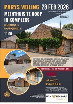 HOME & HECTARE (PTY) LTD offers the following property for sale on Saturday, 28 February 2026, at 11:00, at No. 15 Heaps Street, Parys.
