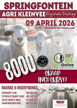 Die aanlyn Springfontein Agri Kleinvee Digitale Veiling vind plaas op die 9de April 2026 om 12:00 te Springfontein Tennisklub via SwiftVEE.