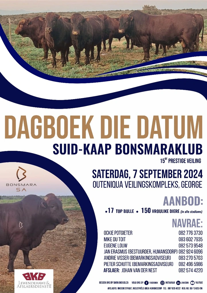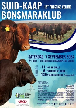 The Suid - Kaap Bonsmaraklub Prestige Auction will take place on Saterday the 7th of September 2024 at the Outeniqua Auction Complex in George.