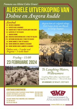 The total dispersal sale of Dohne & Angora herds will take place on Friday, 23 February 2024, 11h00 at Laughing Waters, Willowmore.
