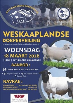 The Weskaaplandse Dorperveiling will take place on the 18th of March 2026 from 11:00 at the Sutherland Show Grounds.